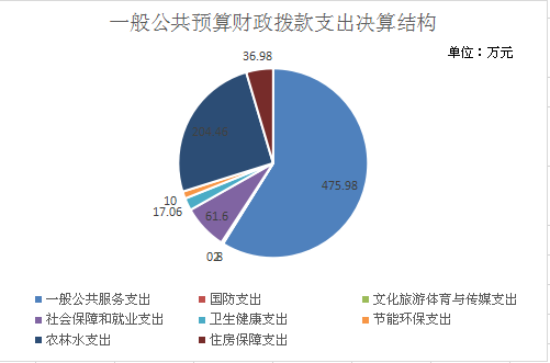 2023年度一般公共预算财政拨款支出808.88万元,主要用于以下方面:一般公共服务支出475.98万元,占58.9%;国防支出0.8万元,占0.1%;文化旅游体育与传媒支出2万元,占0.2%;社会保障和就业支出61.6万元,占7.6%;卫生健康支出17.06万元,占2.1%;节能环保支出10万元,占1.2%;农林水支出204.46万元,占25.3%;住房保障支出36.98万元,占4.6%。