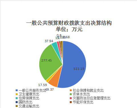 2023年度一般公共预算财政拨款支出874.69万元,主要用于以下方面:一般公共服务支出515.19万元,占53.8%;国防支出0.8万元,占0.08%;社会保障和就业支出69.37万元,占7.2%;节能环保支出10.68万元,占1.1%;农林水支出277.45万元,占28.9%;住房保障支出37.94万元,占3.9%;灾害防治及应急管理支出15万元,占1.6%;卫生健康支出17.59万元,占1.8%;交通运输支出13.35万元,占1.4%。