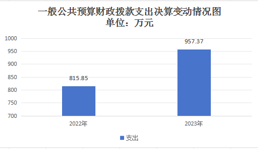 2023年度一般公共预算财政拨款支出957.37万元,占本年支出合计的100%。与2022年度相比,一般公共预算财政拨款支出增加141.52万元,增长17.34%。主要变动原因是2023年各项基本支出、项目类支出少于2022年的各项基本支出、项目类支出。